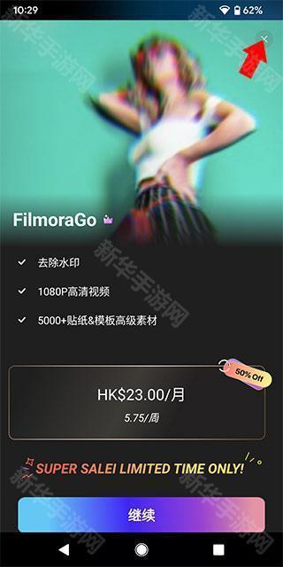 1、下载并打开软件,来到主界面后,点击右上角的“x”,关闭订阅付费界面;