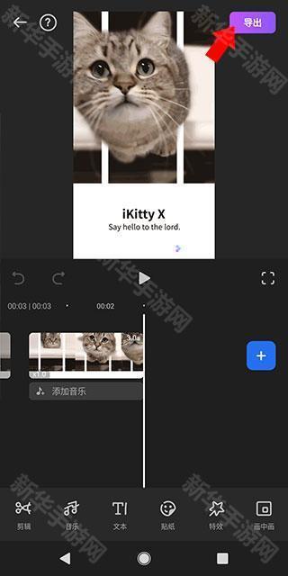 6、编辑完毕之后,点击右上角的“导出”,即可导出视频文件。