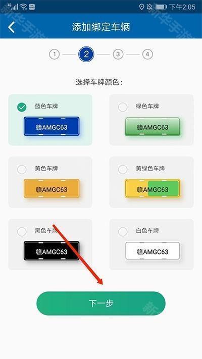 4、选择相应的车牌颜色,继续选择“下一步”,