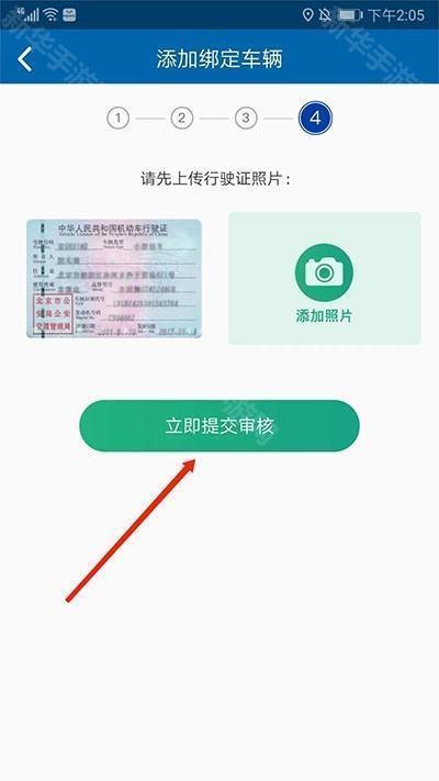 5、按照图示进行上传行驶证照片,选择“立即提交审核”,