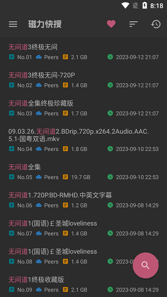 3、点击搜索按钮,几秒钟后,相关的磁力链接将会显示在屏幕上,浏览这些结果。