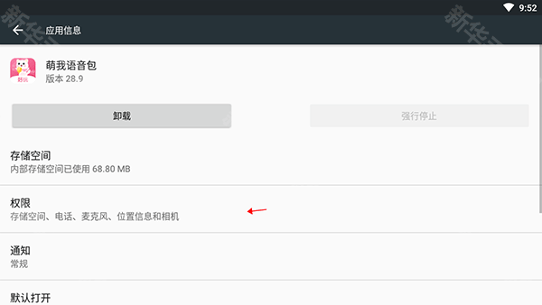 5、点击“应用程序信息”最下面的“权限”;