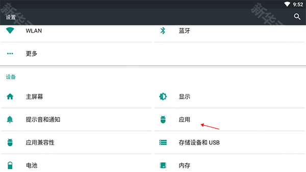 2、点击“设置”列表中“管理应用程序”;