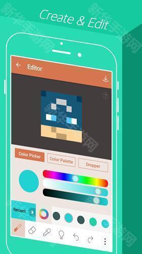 3.我的世界皮肤编辑器手机版提供了强大的工具供您使用,包括刷子、色轮、色盘、橡皮擦等等