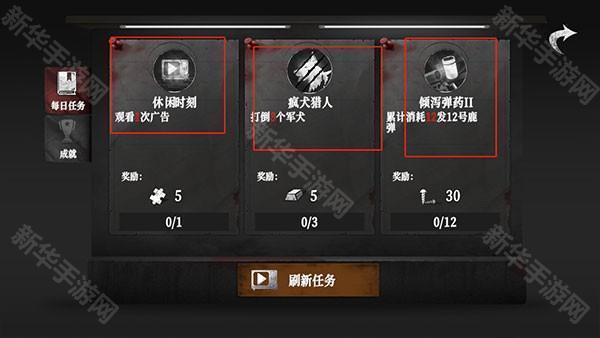 1、首先在本站下载游戏,进入游戏之后可以直接开始新的游戏,想要获得部分物资可以点击主界面右边的每日任务选项