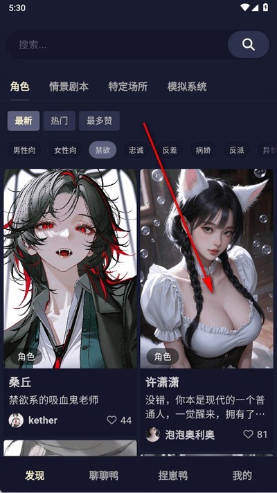 1、打开软件进入首页,选择你感兴趣的角色设定