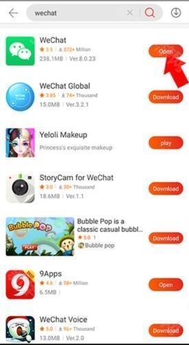 3、之后就可以看到我们已经搜索到wechat(微信)了,之后我们点击安装即可