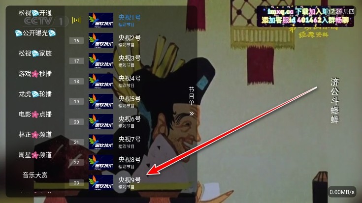 1.打开彩虹飞鸟稳定版,可以看到我们进入了CCTV1频道。