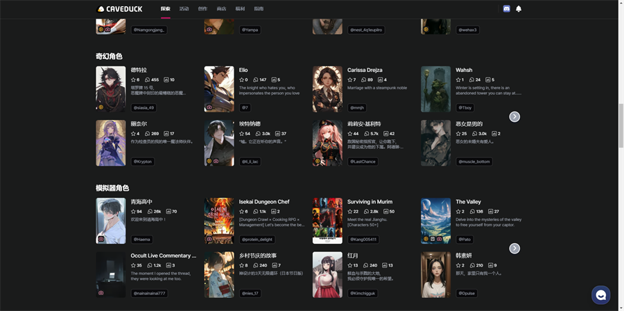 《caveduck》这款软件是一款近期火爆的ai软件,内部含有多种好用的功能,不是一款单纯的问答ai,在这款Caveduck里面时刻有着大量故事不断生存,能够让用户感受到ai里面那种非常强大的功能,同时这款Caveduck里面还有着非常强大的各种功能,能够支持用户时刻掌握各种好用的功能,这款Caveduck的角色全都是AI生成的,非常智能好用,快来下载Caveduck体验吧!