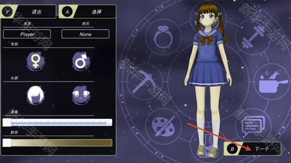 3、创建角色时可自定义发型、服饰、头发颜色、身高、肤色等外观参数;