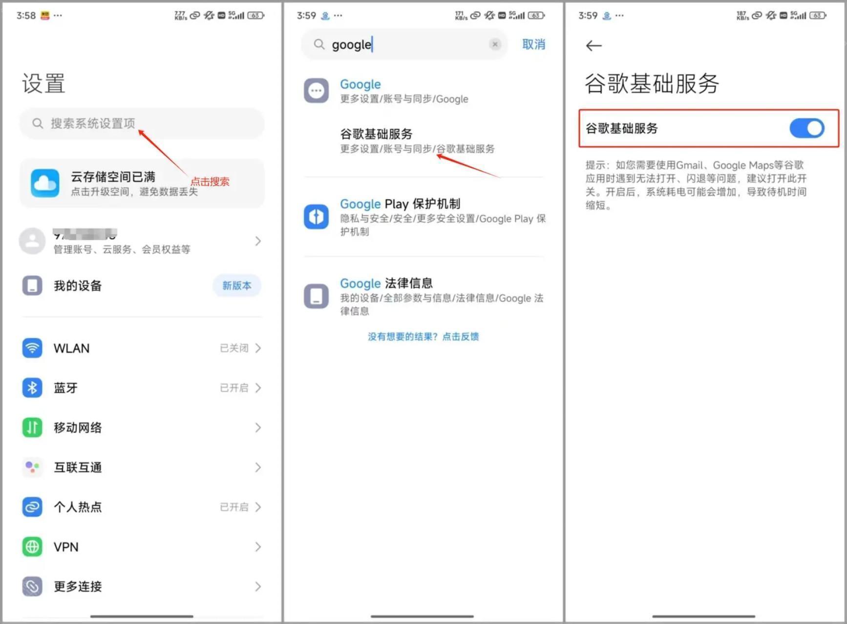 ①手机自带谷歌三件套,但是缺少谷歌商店