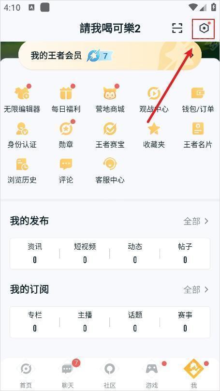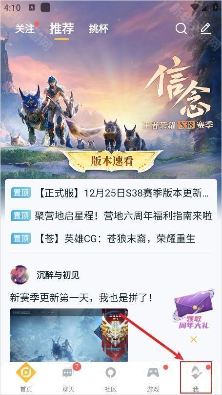 1、进入王者营地主界面后,点击屏幕底部导航栏中的“我”选项。