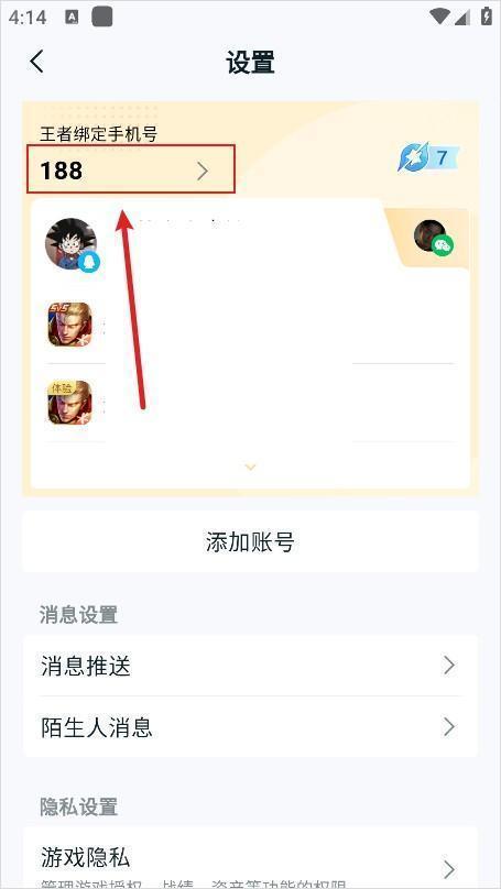 3、在设置页面中,点击下方绑定的手机号。