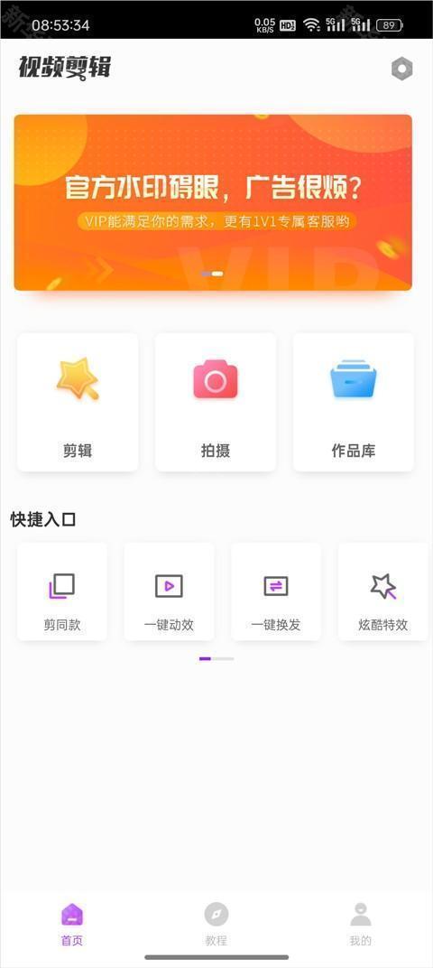 1、进入新版本视频剪辑大师后点击首页的剪辑