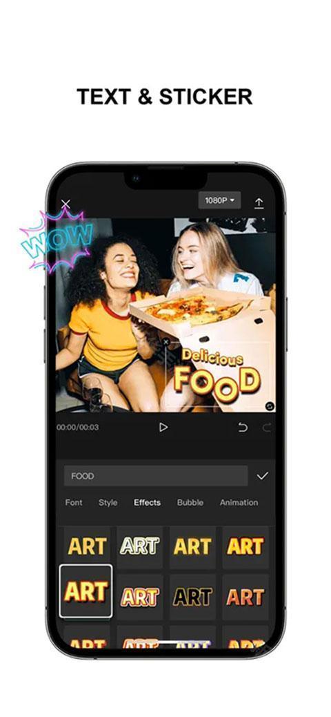 3.贴纸和文字,热门趋势的贴纸和字体可让你充分表达自己的视频。