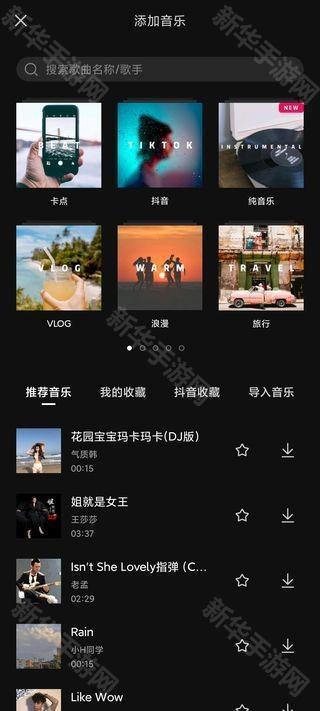 2.提供多种风格的滤镜、音效、字幕、动态贴纸等,激发用户创作灵感。