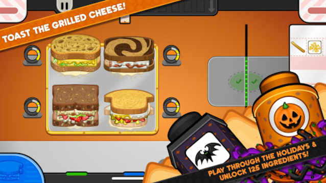 游戏的玩法非常的有趣,玩家需要给客人定制他们想要的三明治,看着三明治里面的芝士融化的样子非常的有趣,制作美味的三明治,还可以让客人对其进行评分。
