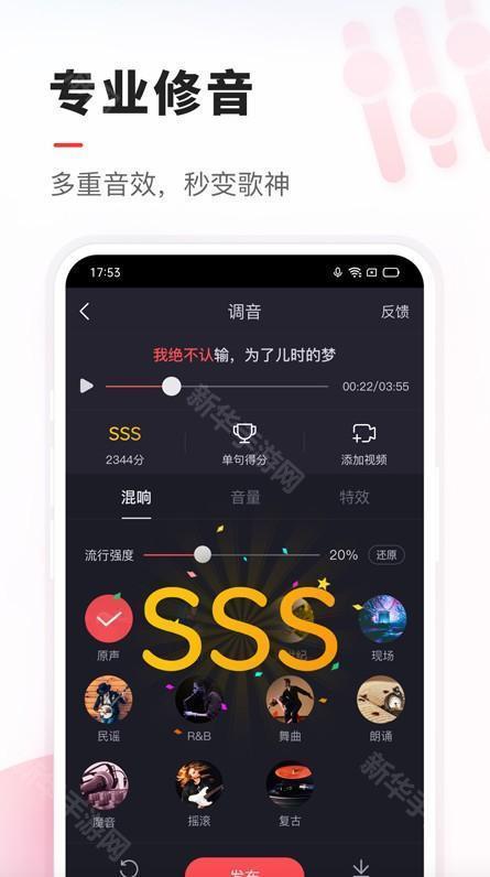 用户们可以使用修音功能,对演唱的歌曲专业修音,然后可以分享到其他社交平台