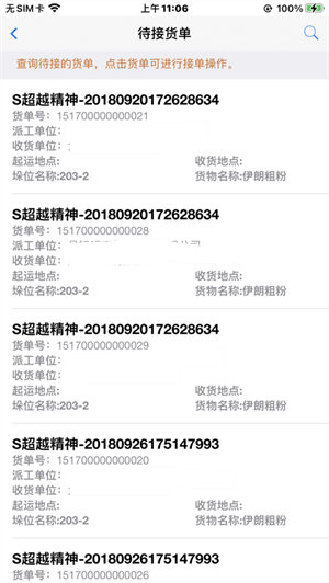3、待接收的订单和没有接受的订单都有,上面的位置、时间、订单号码、名字都描写的很清楚。