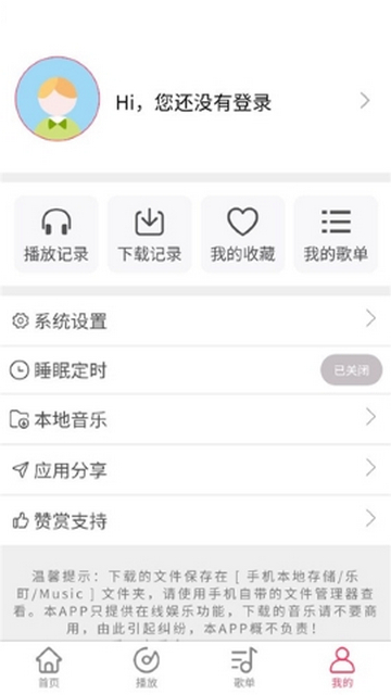 当前系统版本在执行下载操作前,会自动验证存储权限状态,若未获得相应授权则无法继续。成功下载的音频文件默认存储在设备内置存储的[乐町/Music/]路径中。