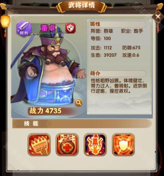 小编认为董卓可以和一个能恢复生命的武将搭配,如:华佗和蔡文姬,可以让董卓成为前排钉子户,肉阵容是非常有效的克制控制阵容~小伙伴们快试一试吧。