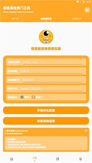 4、点击工具板块,我们可以在这里输入其他设备属性配置并进行适配应用,即可获得相应配置的运行环境;