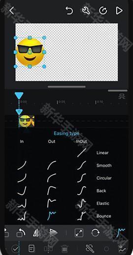 使用缓动函数控制过渡行为:线性、平滑、圆形、回弹、弹性、弹跳。