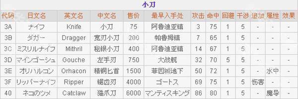 4、剑—菲利奥尼尔的初始使用的武器种类
