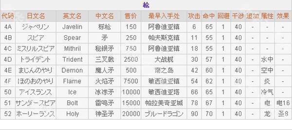 3、长枪—哥顿的初始使用的武器种类