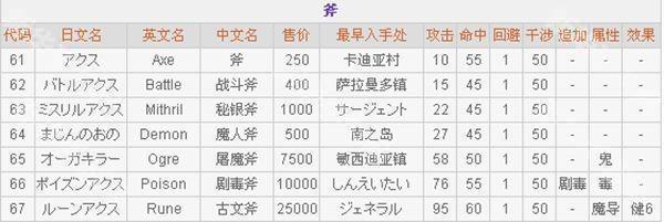 5、斧子—卡伊的初始使用的武器种类