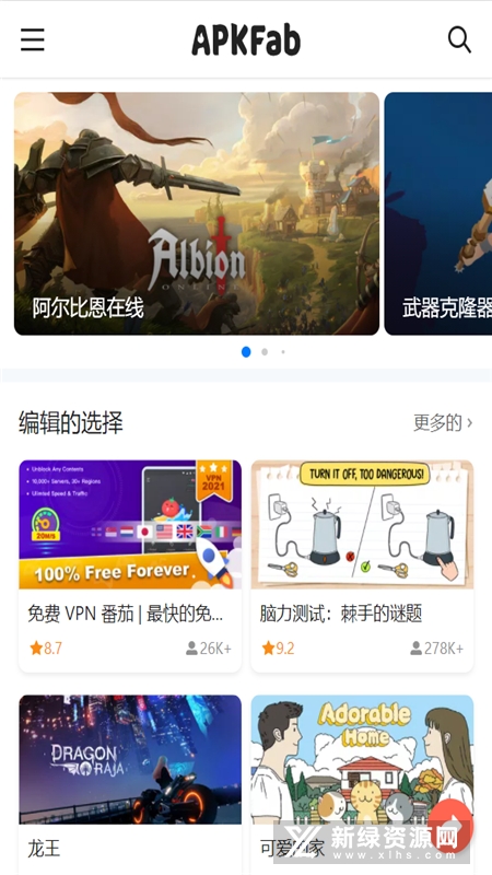 【APKFab】这是一夸应用商店类型的软件,目前,它只支持在Android平台上使用,允许国内用户自由下载海外或谷歌的游戏和软件。无论是寻找最新的社交应用程序,还是需要一个不需要谷歌帐户的强大工具,可以绕过谷歌登录帐户免费下载来自不同国家的谷歌资源内容,一旦有更新,系统还会自动提醒,这款软件可以自动更新,让软件中找到喜欢的海外热门的软件,快来试试看吧。