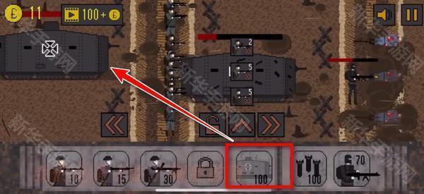 3.你的目标是选择正确的士兵和坦克组合来征服敌人的战壕,并使用战术火炮来支持你的部队。