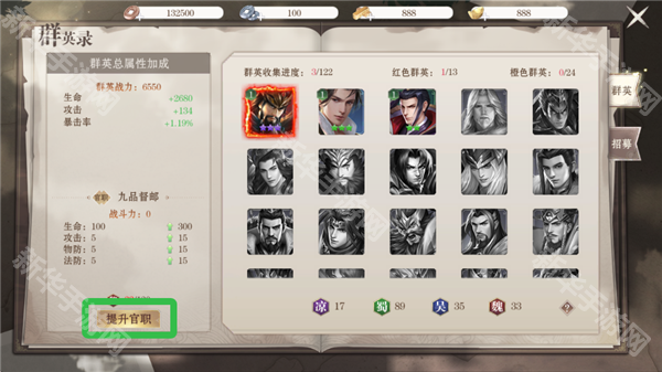 提升群英的官职可增强其生命、攻击、物防等属性。