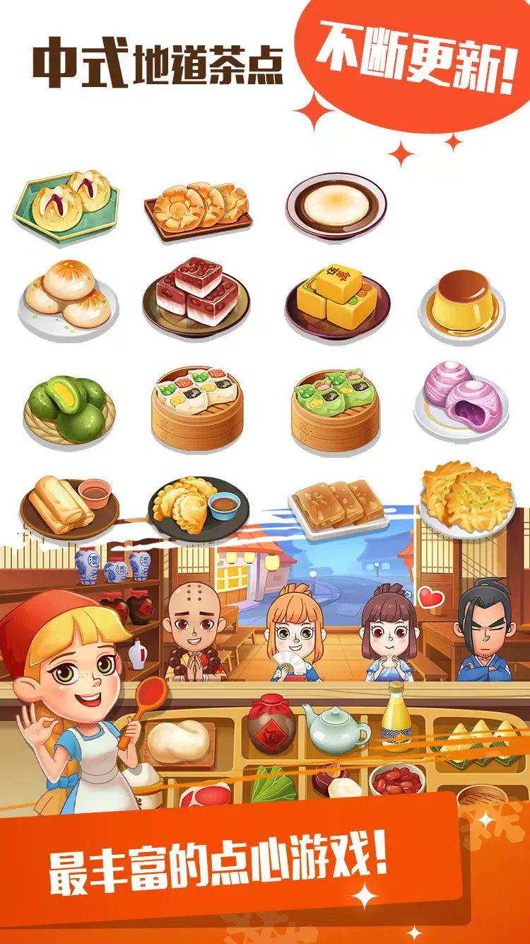 《点心大厨最新版》这是一款模拟经营类型的游戏,游戏由“Together Fun”工作室出品,这个版本为最新版,玩家将推着自己的点心摊前往世界各地,让玩家能够制作美味的蛋糕、可颂、麦片,还有非常有地域风格的和果子、豆沙包、油炸丸子等等,让玩家能够通过探索世界获得新的菜谱,让你能够填充你的菜谱,吸引更多的客人前来光顾,赢得好评和金币,升级自己的厨具。