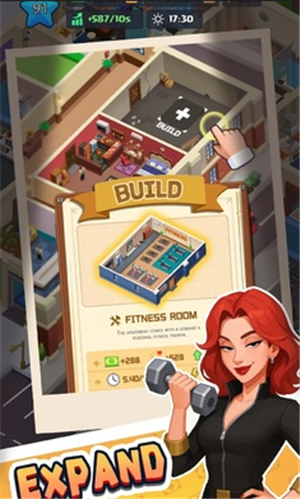 1.有50多种类型的建筑和100多个级别,玩家需要不断提高他们的公寓星级。