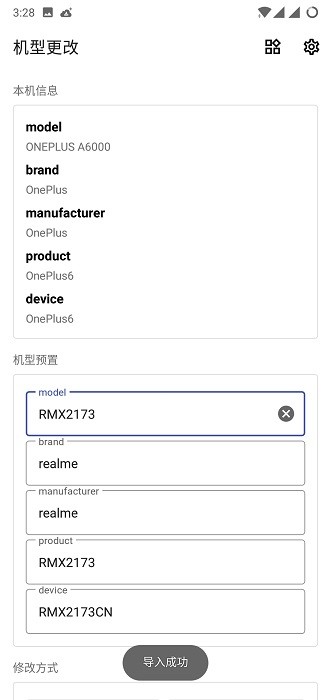 你也可以选择修改(MAGISK模式),同样能实现修改机型的效果。ROOT模式直接修改系统文件,而Magisk模式不会修改,卸载模块就会还原。理论上root模式成功率更高
