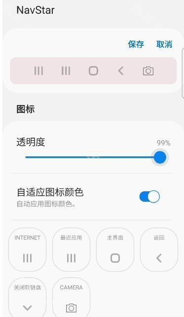 4、调整图标的透明度,还可以自主选择导航条上的图标样式,太多太多的图标