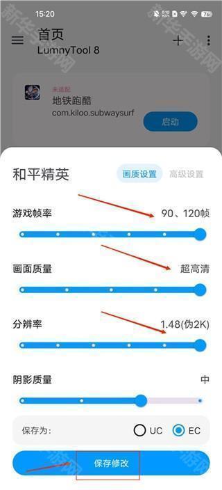 3.针对不同的手机型号会有不同适配的版本,在修改画质之前,需要选择自己手机的型号。