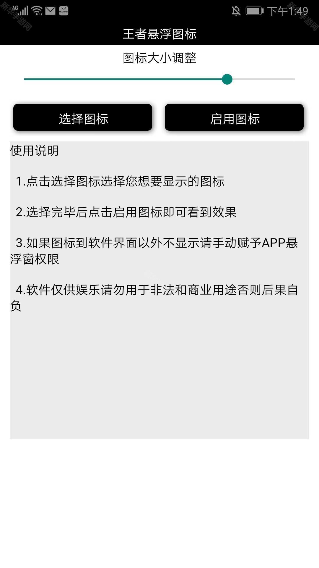 6、当我们返回应用界面,选择【启动图标】选项,同时还能通过上方的拖动条调整图标的大小,