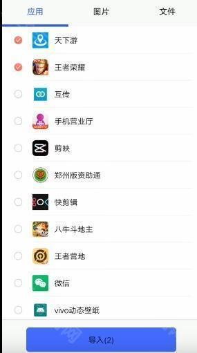 3、选择“天下游”和“王者荣耀”,点击“导入”。