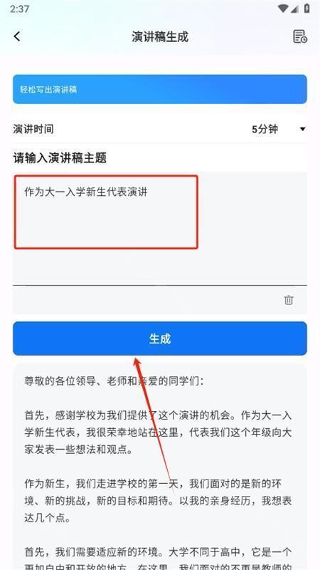 5、选择需要的功能进入,输入内容主题点击生成即可