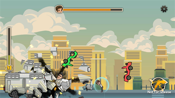 4、坚持一段时间后就会进入boss战,滑动屏幕可以移动角色躲避高楼,击中boss可以减少血量,当血量为零时就可以通关。