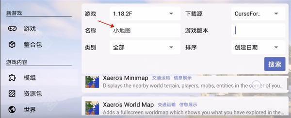 2、在名称这里输入自己想要找的类型,小编就以小地图为例。