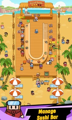 游戏的玩法分为两个部分,一个是经营寿司店,一个是在海底捕鱼,但注意这两个是相辅相成的,如果没有原材料,晚上就不能开店了,而只靠捕鱼不开门,就无法赚钱升级潜水工具。