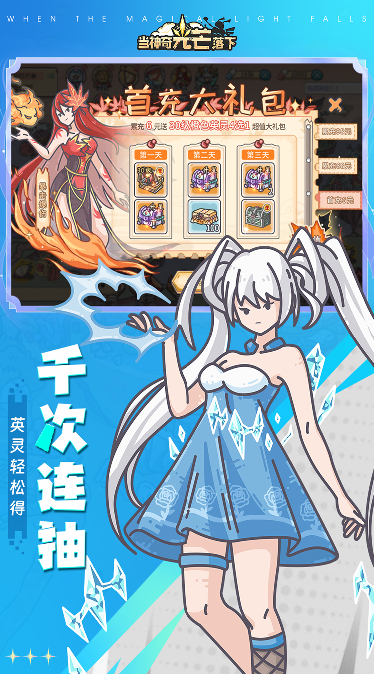 《当神奇光芒落下(0.1折免费版)》这是一款角色扮演类型的游戏,游戏由“悠谷网络科技”工作室出品,这款游戏为0.1折扣服,自由选择角色和职业,与英雄配对以完成更多的任务挑战,通过抽牌获得新角色,提高他们的等级以变得更强,以及进行战斗都是超级无忧的。挂断也可以增强战斗力;多故事情节就像打开一个盲盒,每一步都有新的惊喜,并且能够与大陆上不同种族的NPC互动,揭开隐藏的秘密。