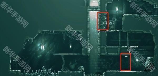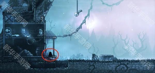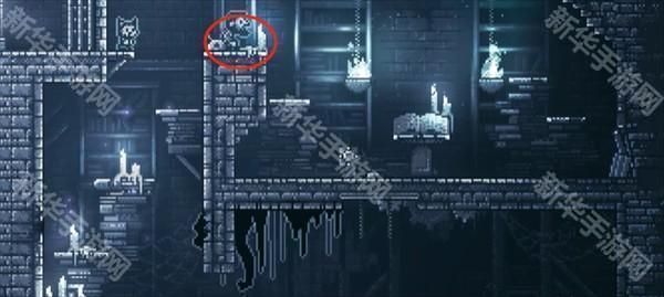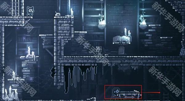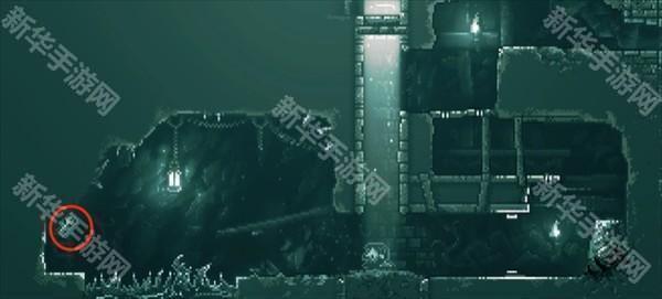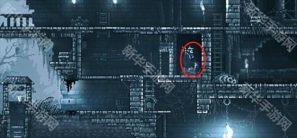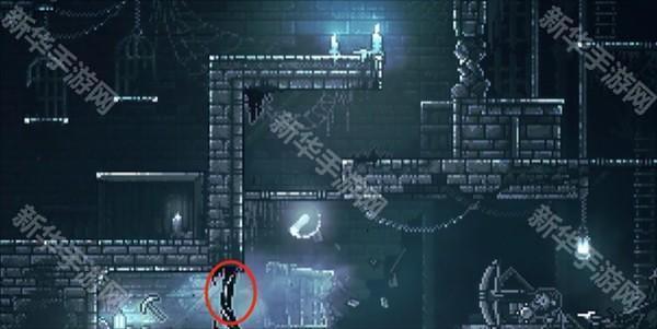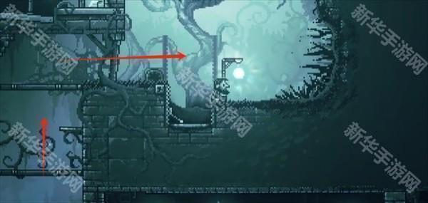 4、继续向右前进,砍断挡路的藤蔓后进入城堡区域,前往右下方的火盆处。