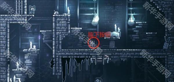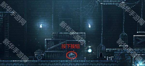按下怪物左边的按钮,三个铁笼升起。爬上笼子往右走,再爬上最右侧的梯子。