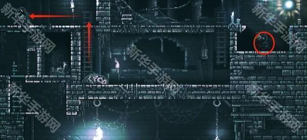 12、登上吊灯右边的平台,柱子断裂后,将之前推倒的柱子推来修复平台,往左跳去获取钥匙。
