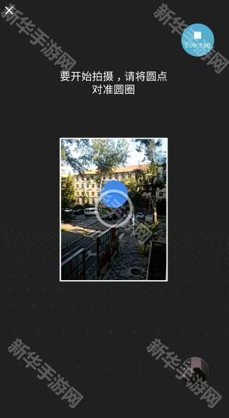 要开始的话将手机对准最开始的蓝色大圆点,相机开始校准,之后就会出现引导的白点,只要将手机一个个的对准这些个点相机就会自动记录下来,
