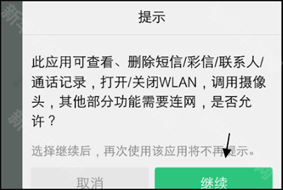 1、在手机上下载vivo互传软件,并打开。如果是第一次使用vivo互传功能,必须对软件进行授权才能使用,在弹出来的窗口中点击继续选项。